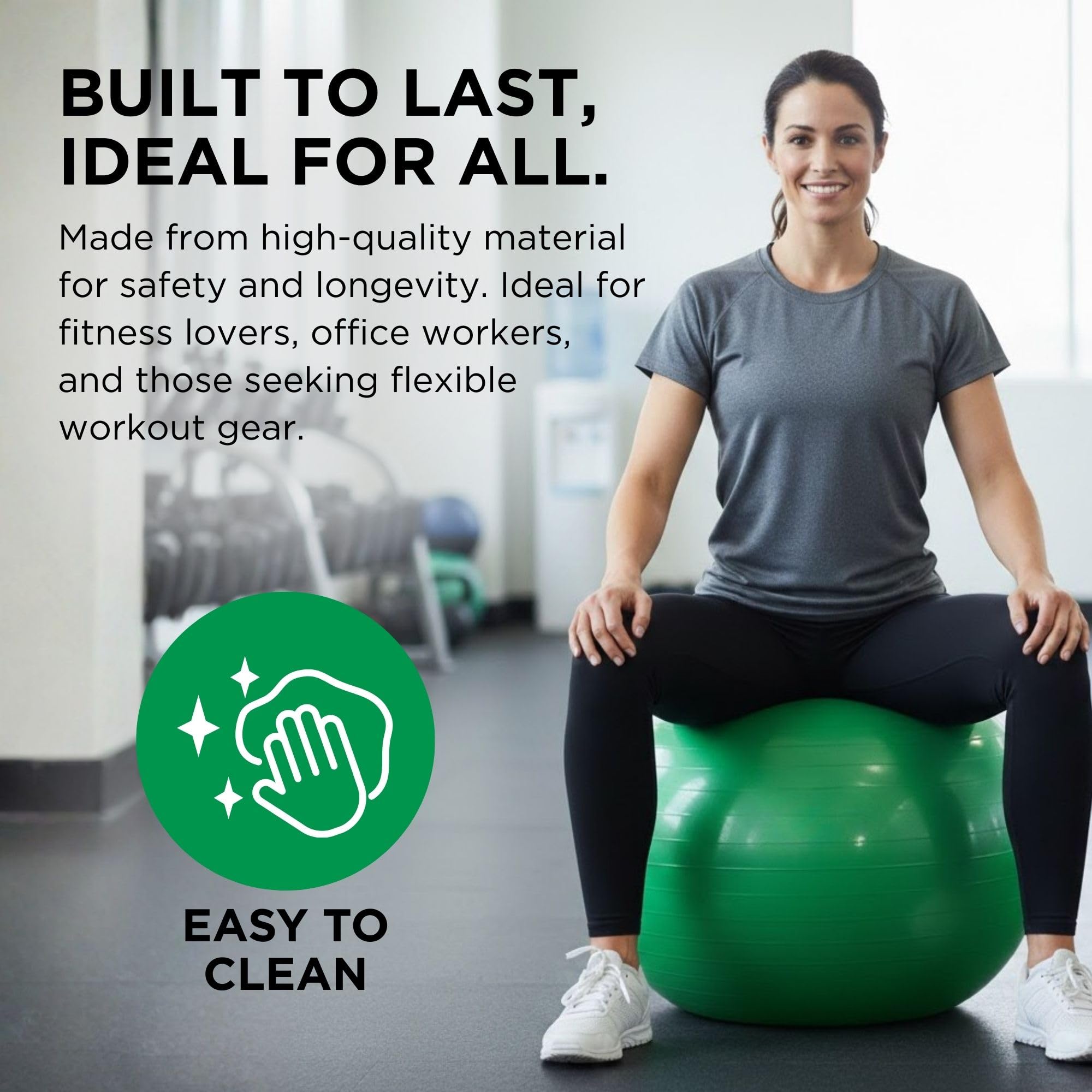 Theraband 23030 Exercise and Stability Ball for Improved Posture, Balance, Core Fitness, Coordination and Rehab, Green, 65cm Diameter