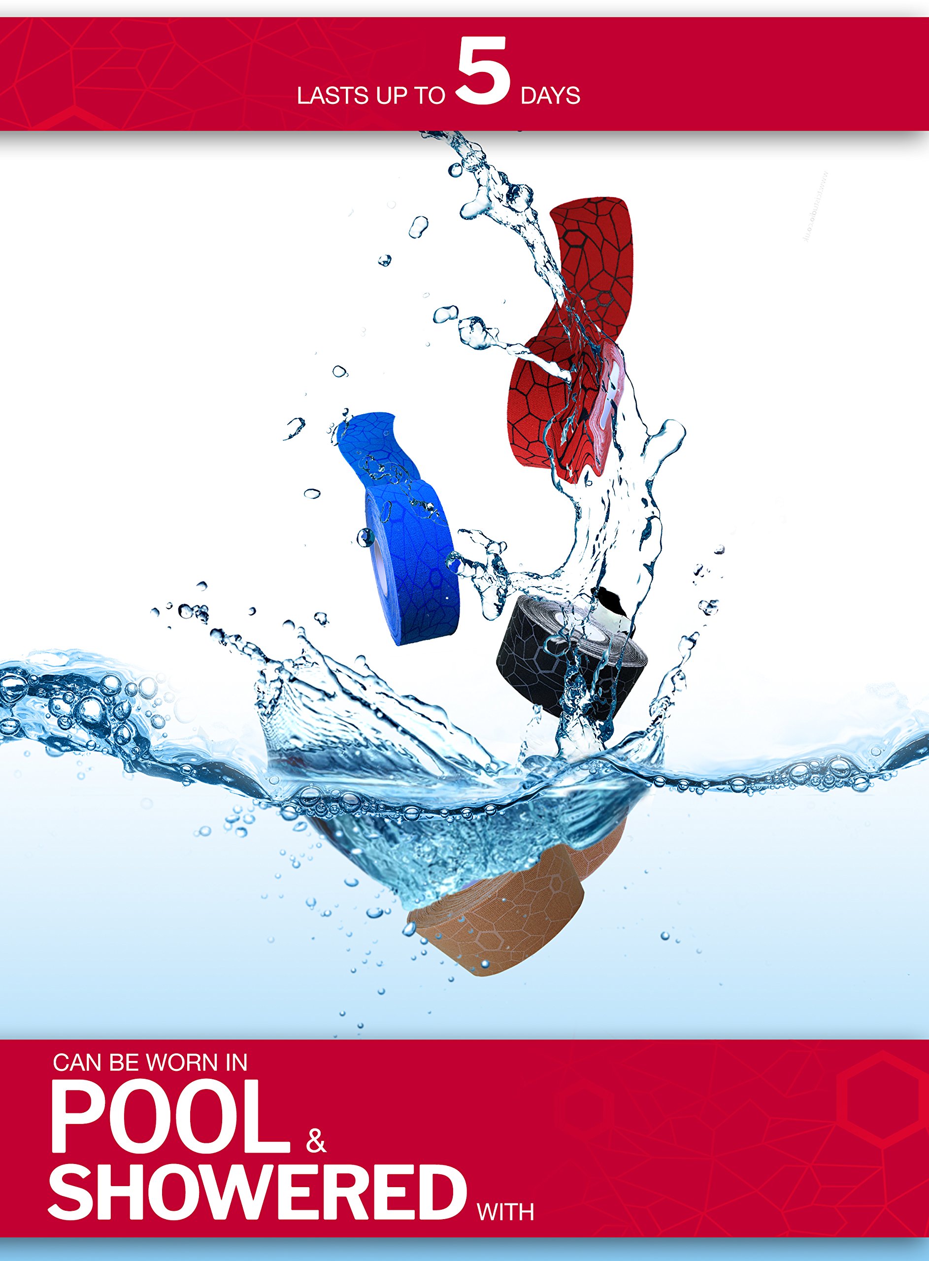 - Non-irritating, allergy-tested, non-latex tape made of 98% Cotton, 2% Spandex blend; tape is clinically tested to provide relief for up to 5 days without limiting range of motion - adhesive is research proven to last longer than leading brands