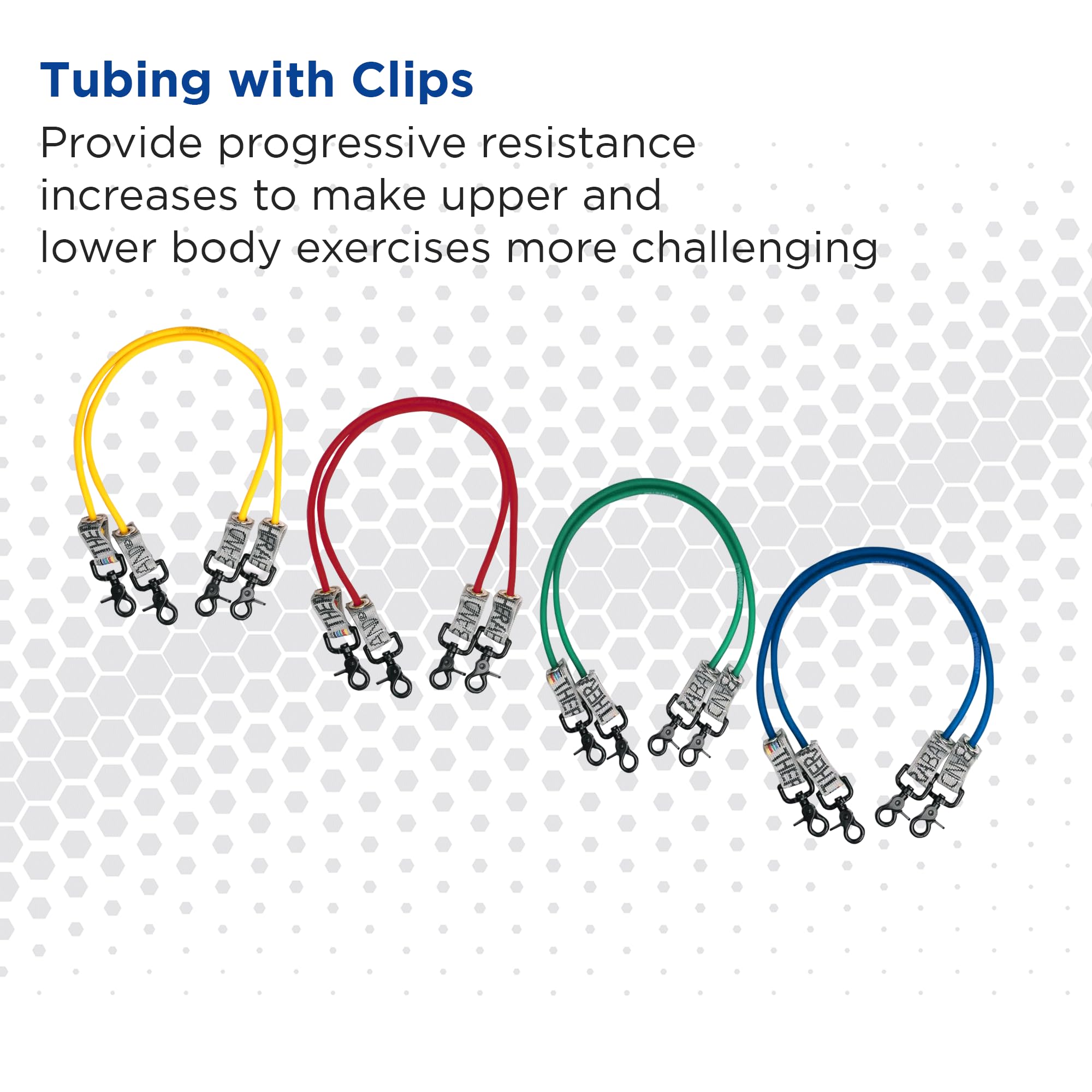 - READY TO CLIP & TRAIN: Includes two extra heavy Level 5 blue latex tubes with built-in connectors, providing 5.8 lbs resistance at 100% elongation; no extra tools needed for attachment to wall stations, handles, or anchors